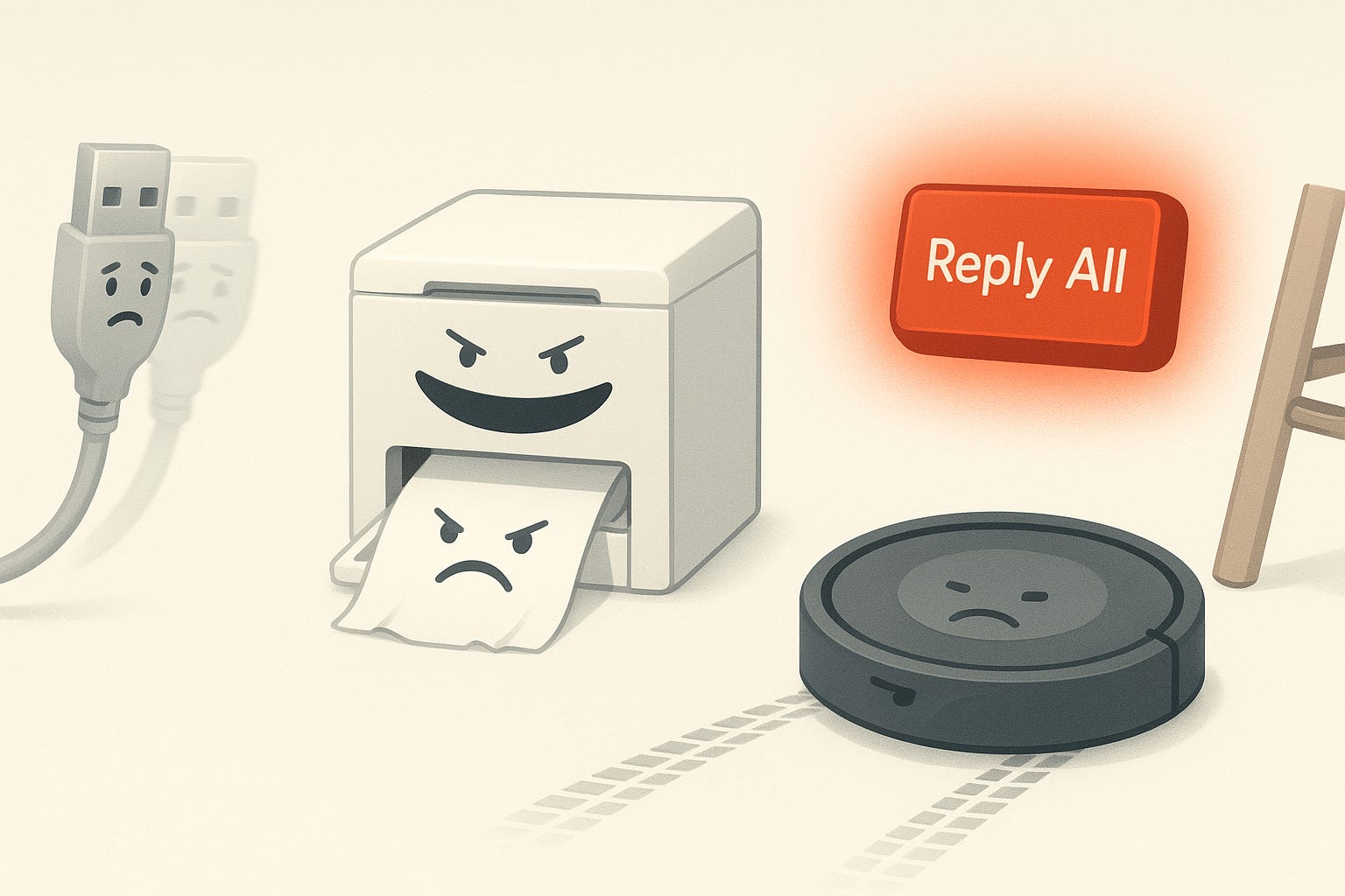 Reply All: The email button equivalent of a chaos demon. It sits there, innocent-looking, waiting for someone tired enough to accidentally create an office-wide catastrophe. The Reply All button doesn't have accidents. Only opportunities.